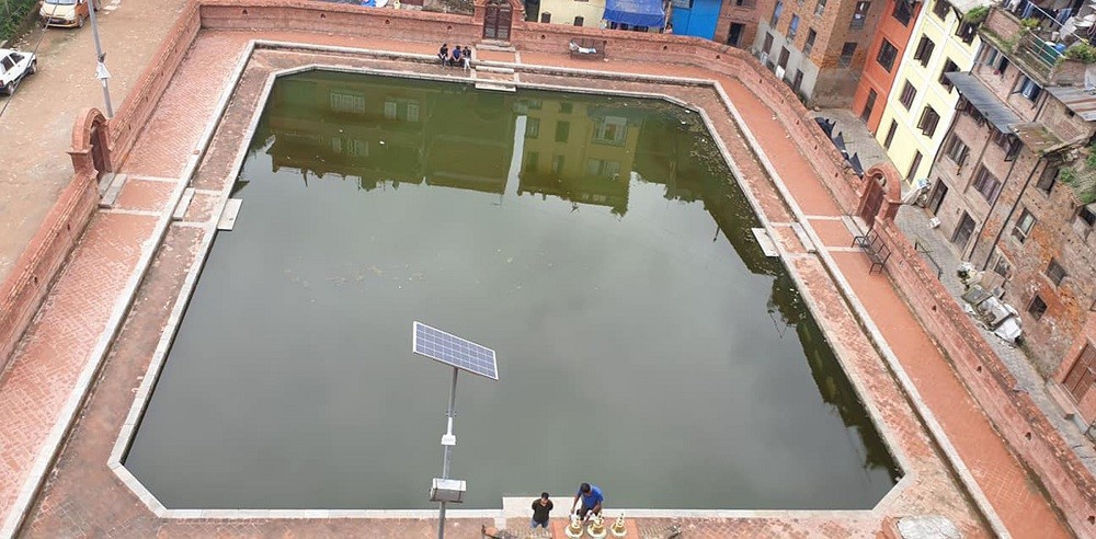 Madhyapur Thimi Municipality has revived two historical ponds (Nigu:pukhu:) which have been turned into playgrounds for years due to lack of protection. The Municipality has reconstructed its historic pond and turned it into the original form by filling it with water, which was a football ground and invaded by grass and weeds until two years ago. After completing the reconstruction, water has been filled for the upcoming Biska Jatra on Baishak 1 (festival is celebrated at the start of the New Year in the Bikram Sambat calendar). The municipality had completed the reconstruction of one of the two ponds and filled it with water for the last Biska Jatra.