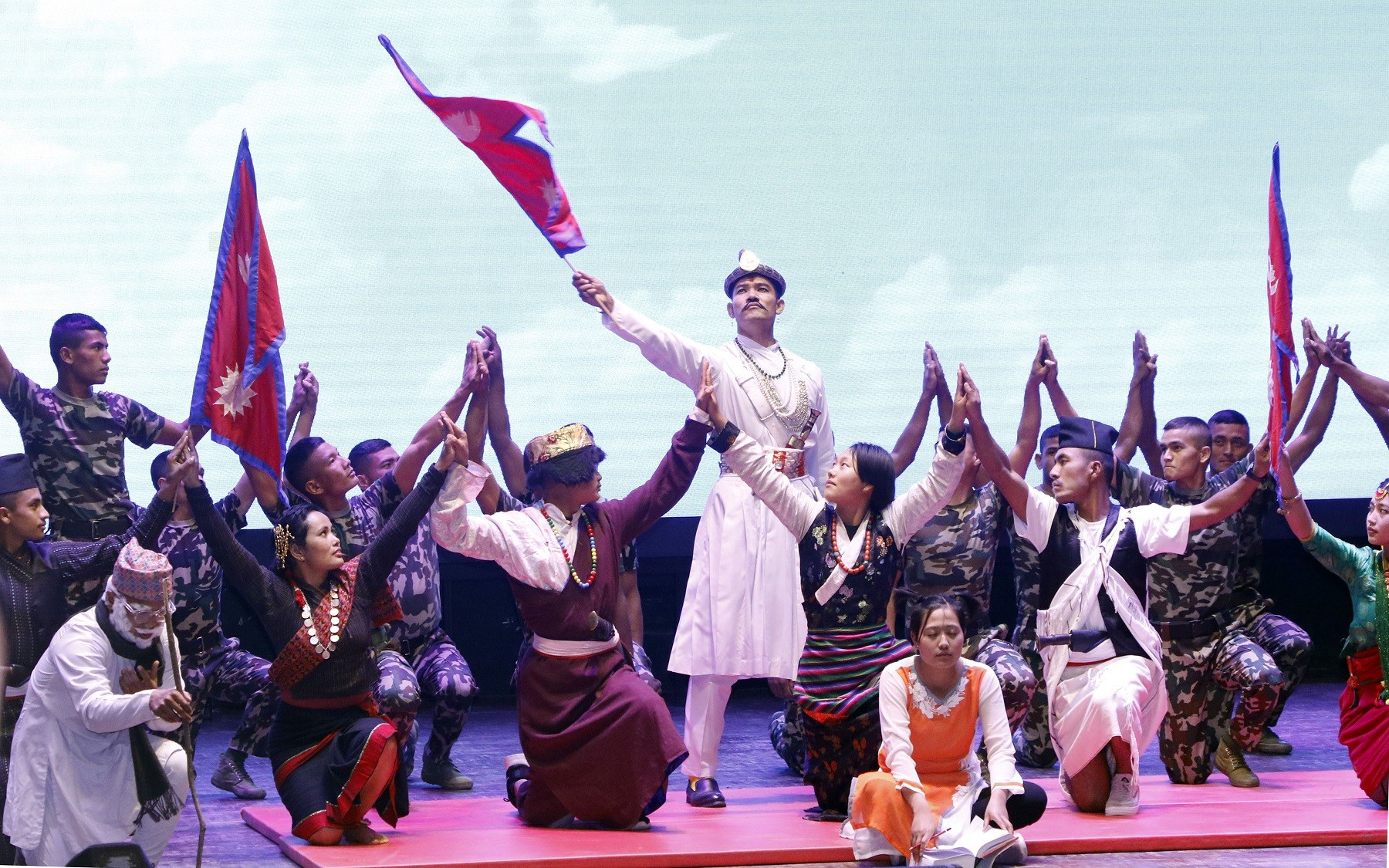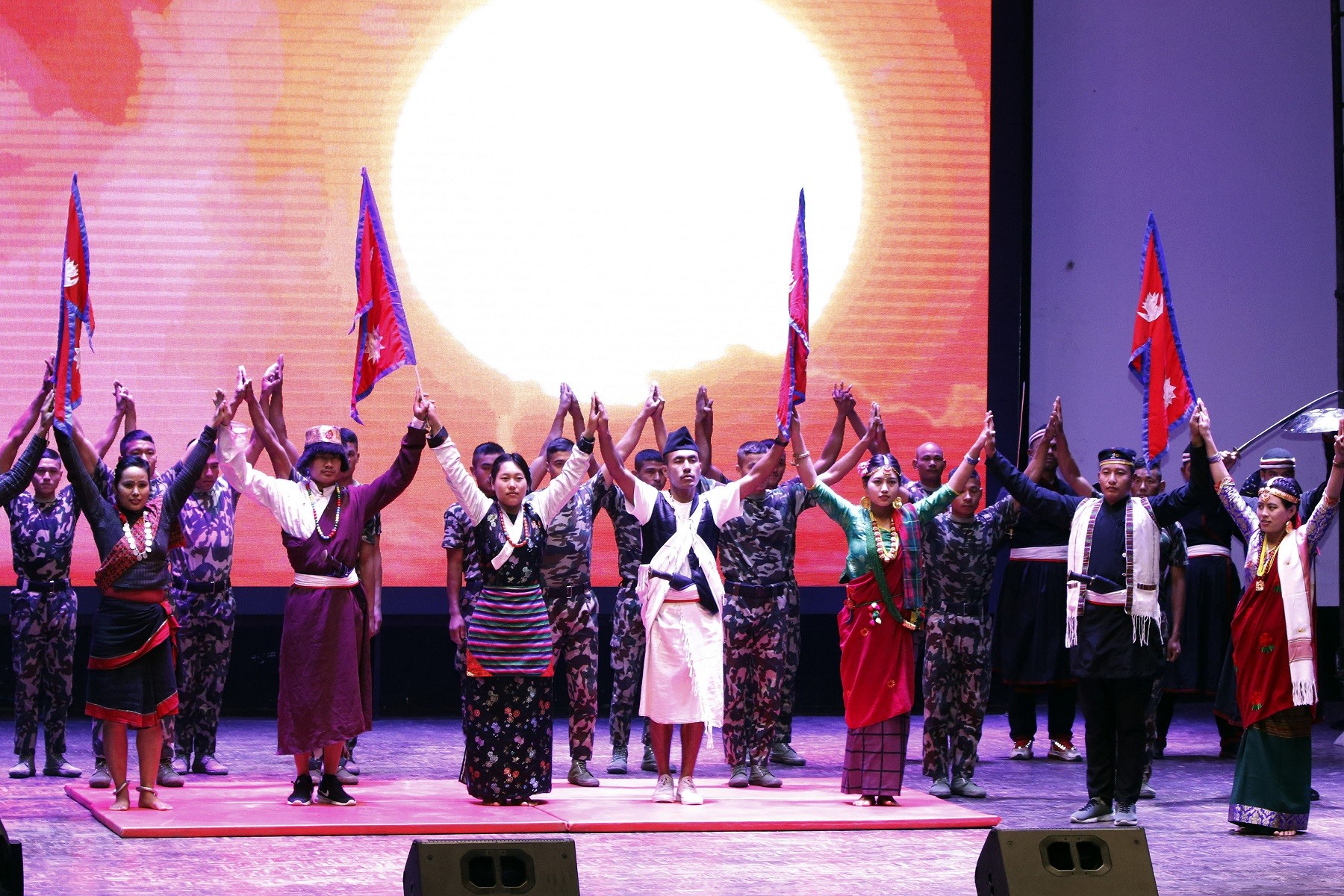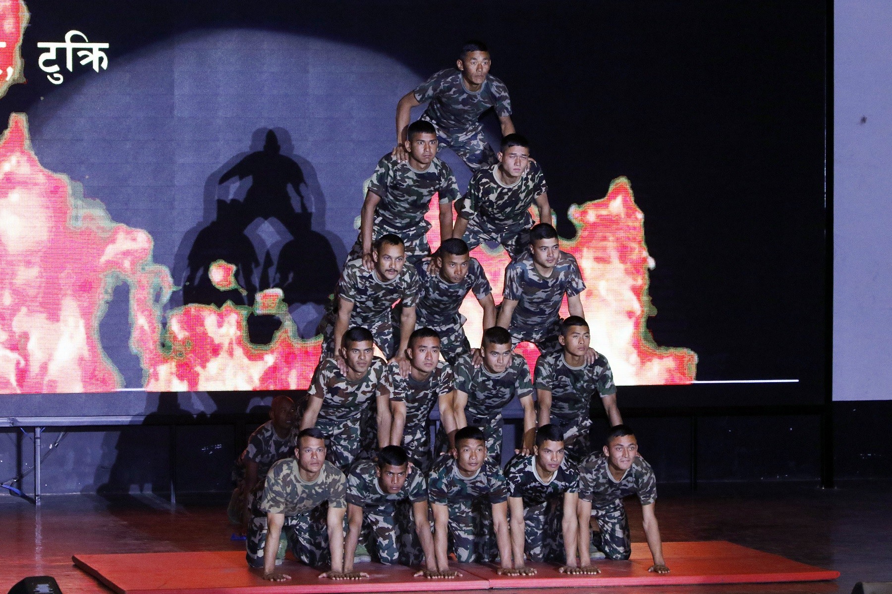 Demonstration of art skills by the Nepal Army at the closing ceremony of the second large-scale seminar on integration route program organized by the Nepal Army on Sunday.