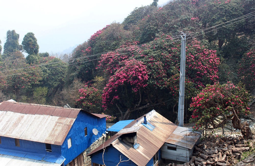 Annapurna village municipality-6 of Myagdi, Laligurans blooming in the forest of Ghodepani. With the flowering of Gurans, the activity of domestic tourists has increased in Ghodepani.